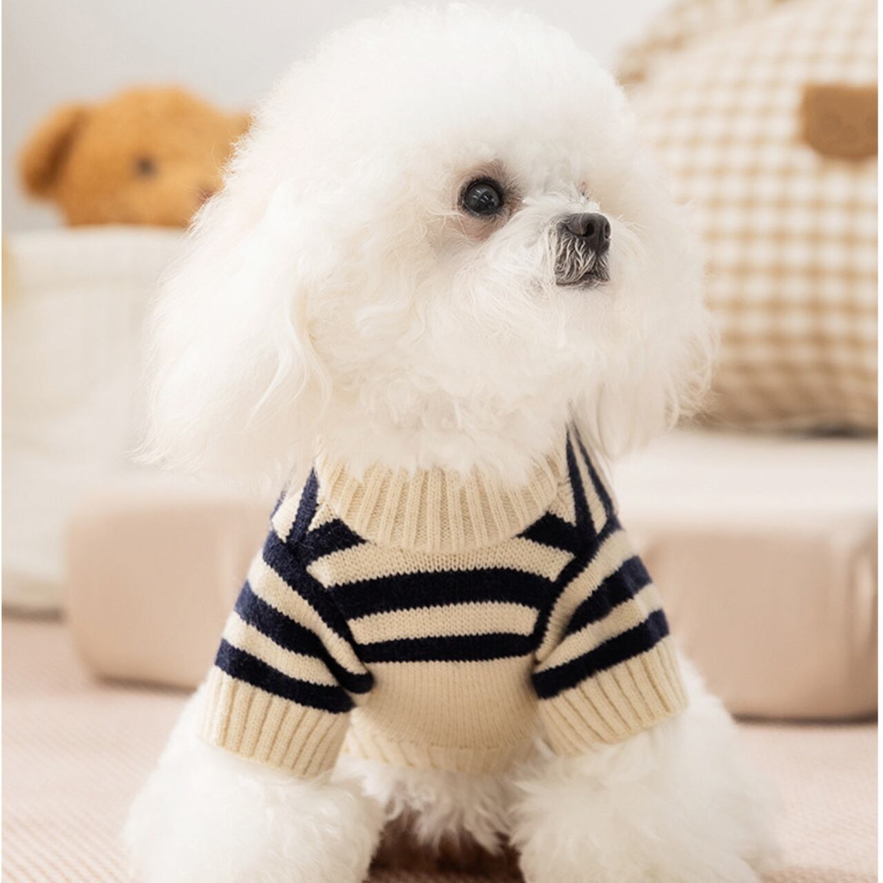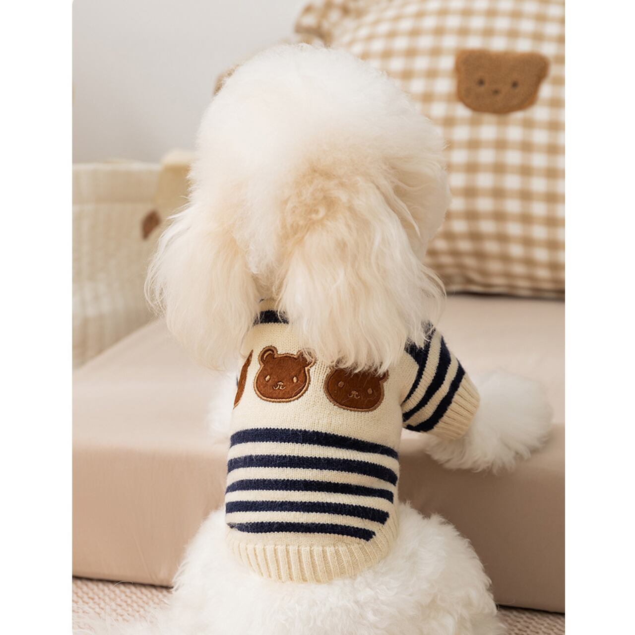 【わんのいえ】犬服 秋冬ペット服 ドッグウェア おしゃれ かわいい ペットカジュアル 小型犬 抜け毛対策 長袖 寒さ対策 ウェア 長袖 トップス 人気 防寒着 くま ボーダー 柄 ブラウン ネイビー