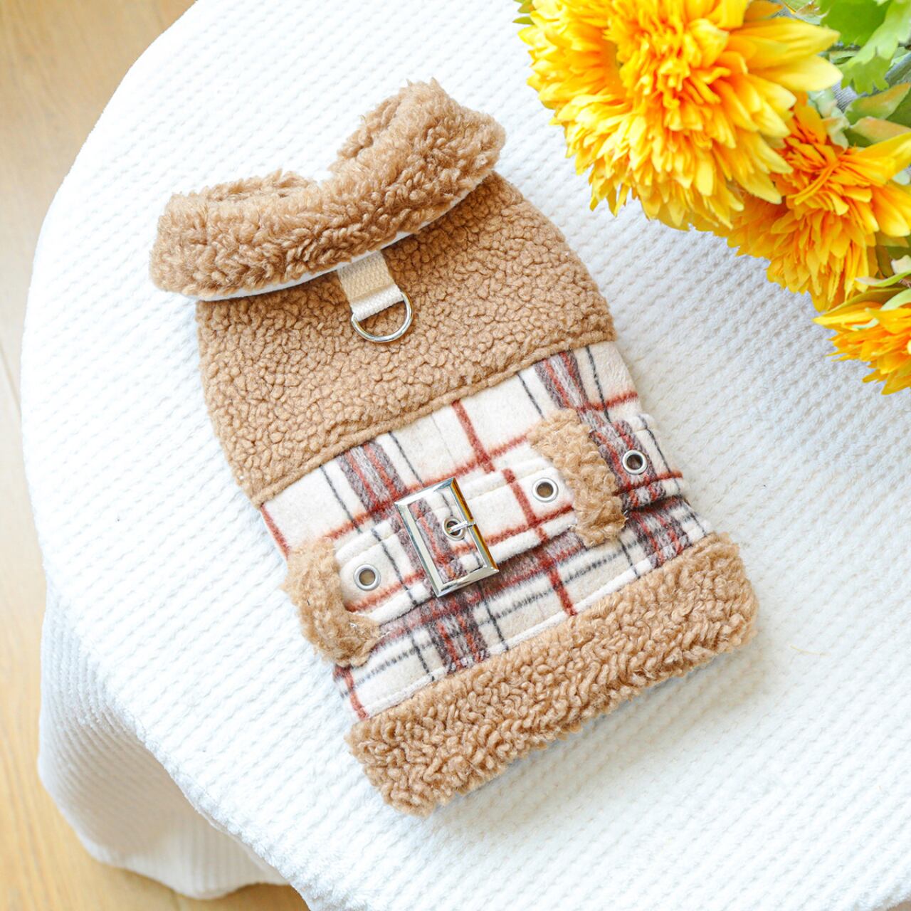 【わんのいえ】トップス 人気 防寒着 Dカン付き カジュアル 小型犬 抜け毛対策 寒さ対策 犬服 秋冬ペット服 ドッグウェア おしゃれ かわいい ペットウェア 英国風 チェック柄 茶色