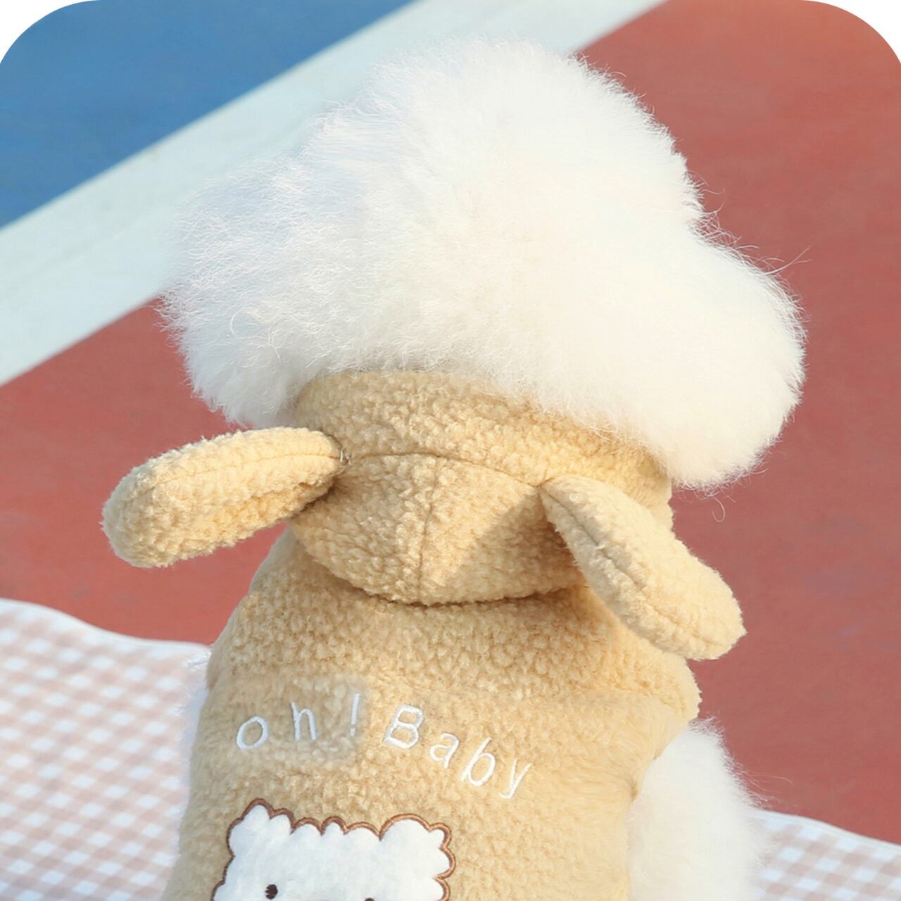 【わんのいえ】犬服 秋冬ペット服 ドッグウェア おしゃれ かわいい ペットカジュアル 小型犬 抜け毛対策 寒さ対策 ウェア トップス 人気 防寒着 あたたかい 耳付きフード 冷え対策 ベージュ