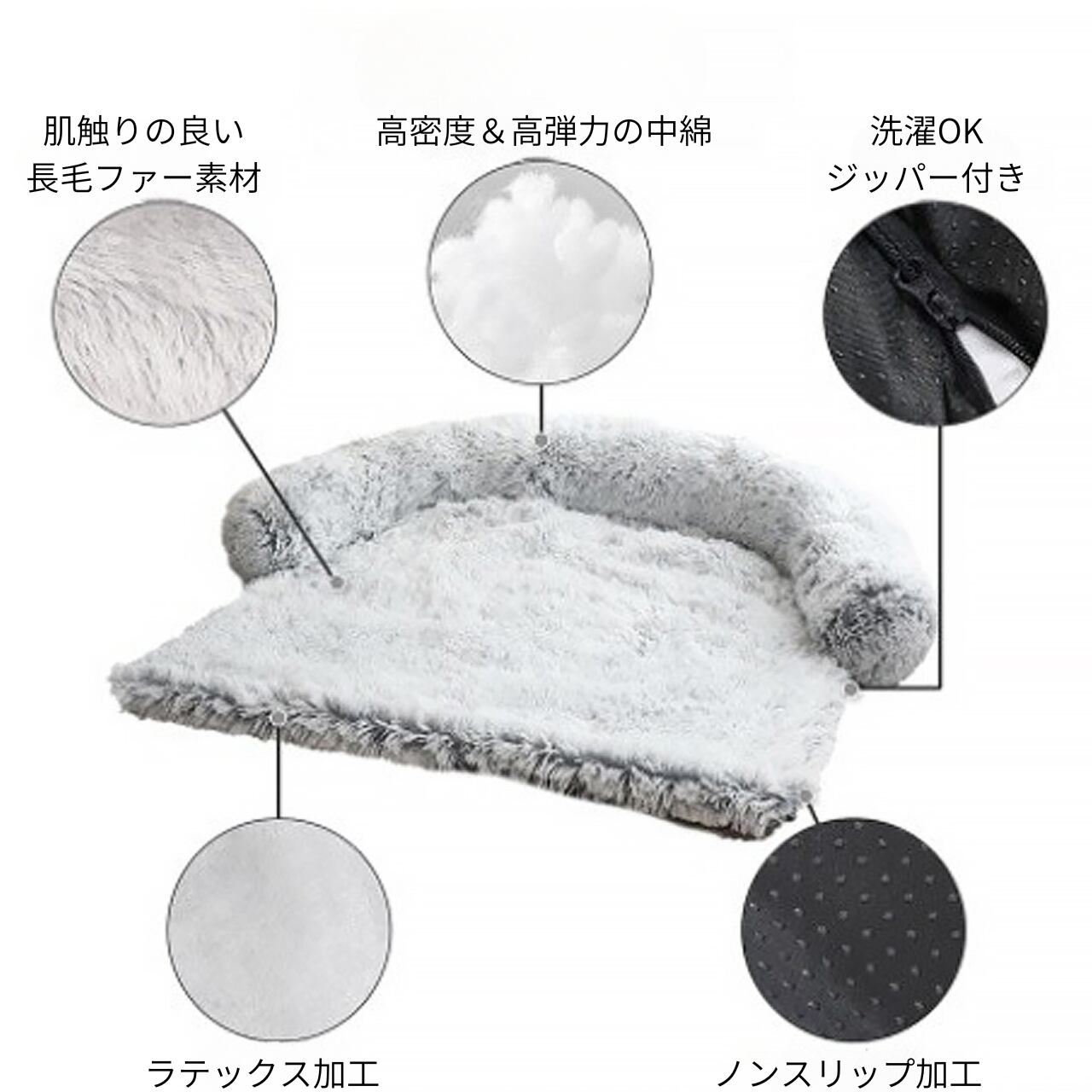 【わんのいえ】ペット用ベッド 犬用ベッド 犬 グッズ 寝具 ペット用品 ペットクッション ふんわり ふわふわ あったか ベッド丸洗い 洗える 掃除しやすい ペットハウス ソファーにも使える グレー ダークグレー ブラウン 長毛ファー ジッパー付き 清潔 マット ベッドカバー