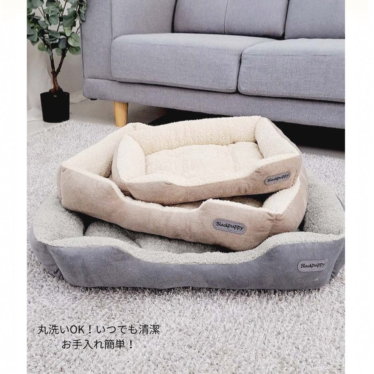 【わんのいえ】ペット用ベッド 犬用ベッド 犬のベッド 犬 ベッド 寝具 ペット用品 ペットクッション ふんわり クッションベッド もこもこベッド ふわふわ あったか ベッド丸洗い 洗える 掃除しやすい ペットハウス 手洗いok グレー 旅行 セカンドベッド