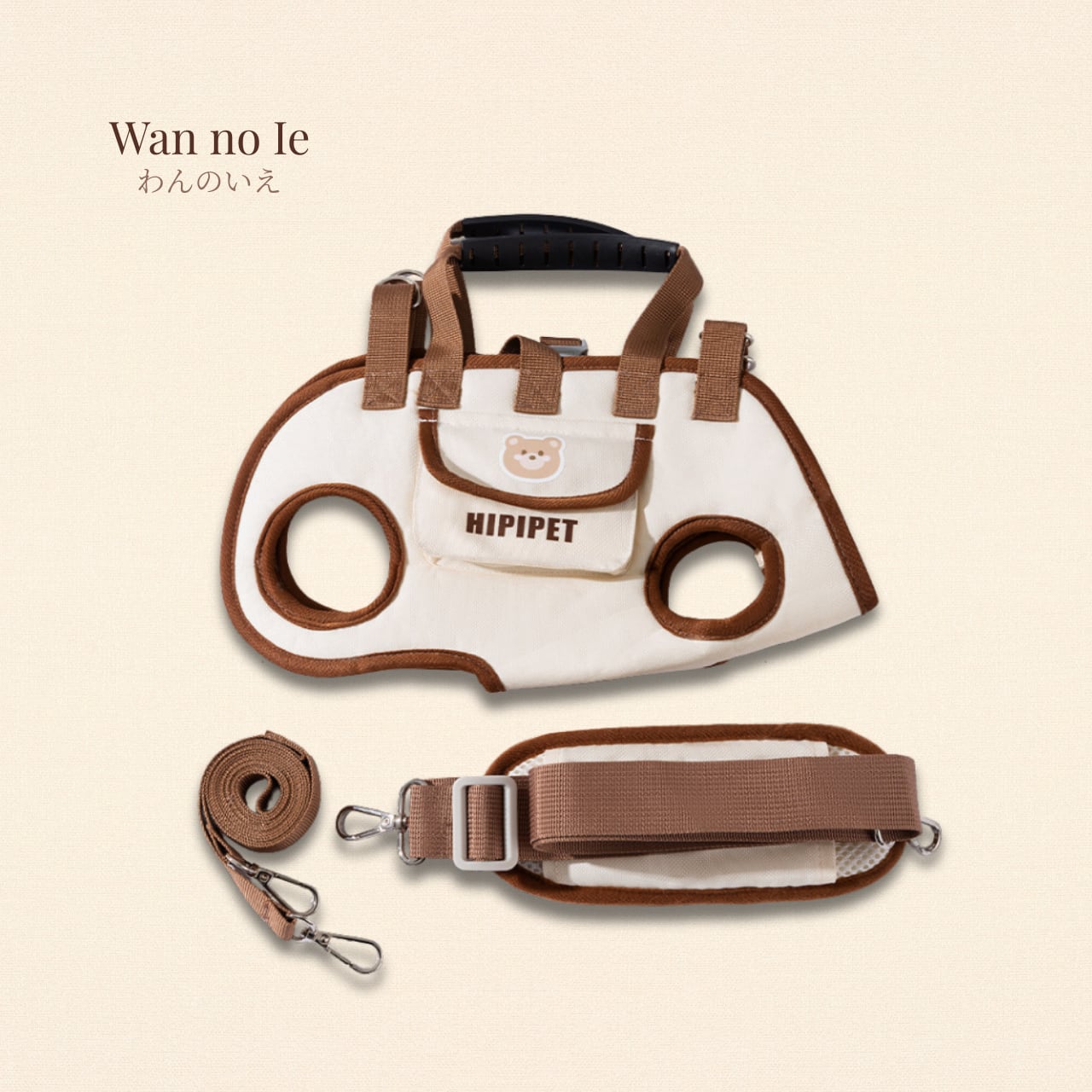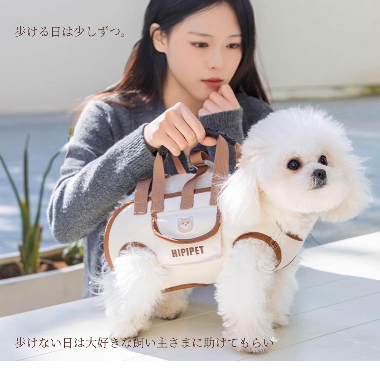 【わんのいえ】ハーネス 小型犬 リード 首輪 おしゃれ 可愛い 脱げない 抜けない 抜けにくい 体に優しくフィット シニア犬 散歩 ベージュ 黒 歩行補助 老犬 介護 補助