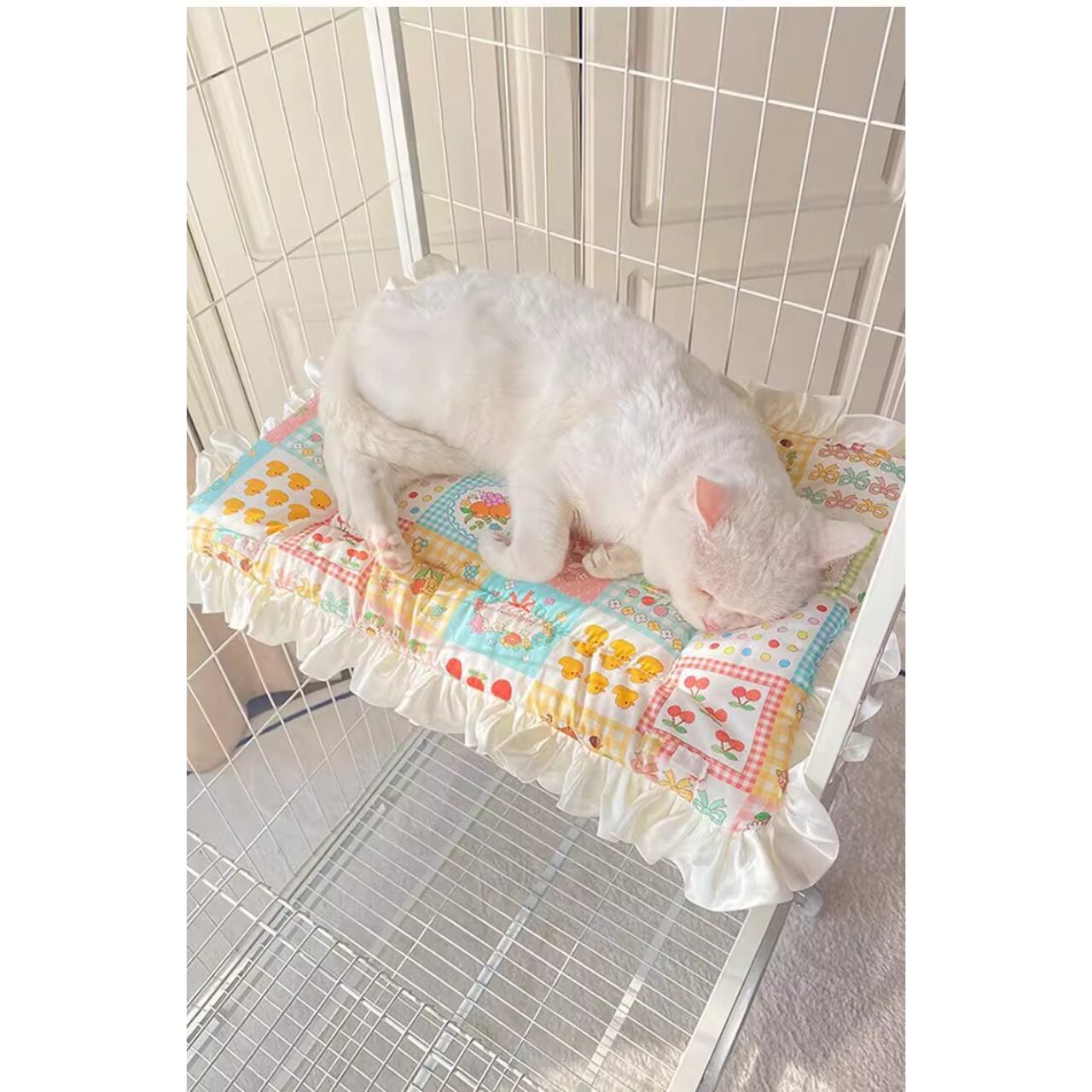 このマットは、ハウス・ゲージの中はもちろんリビングでもワンちゃん・ネコちゃんがほっと安心できる、やさしい居場所をつくります。ふんわりとしたクッションで、