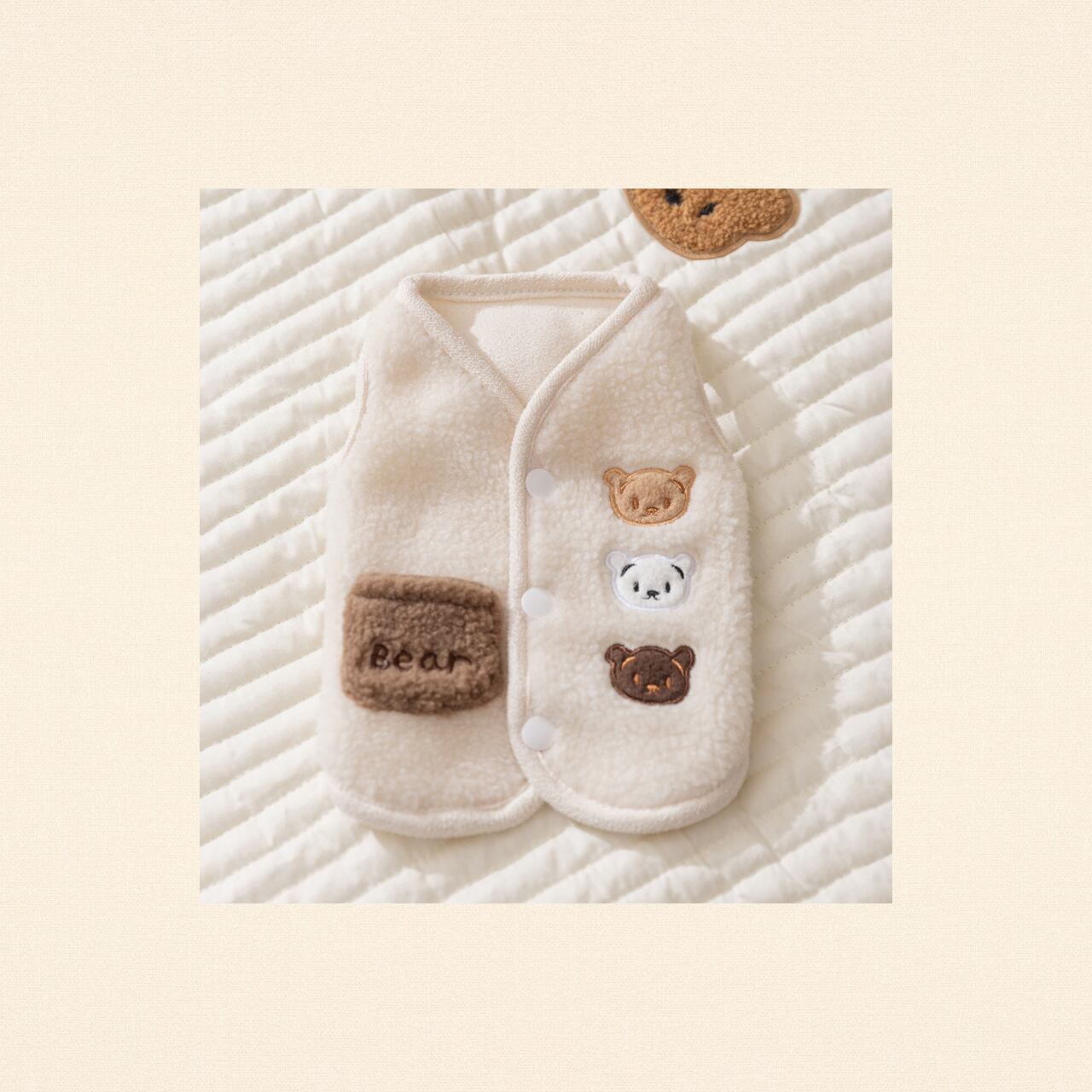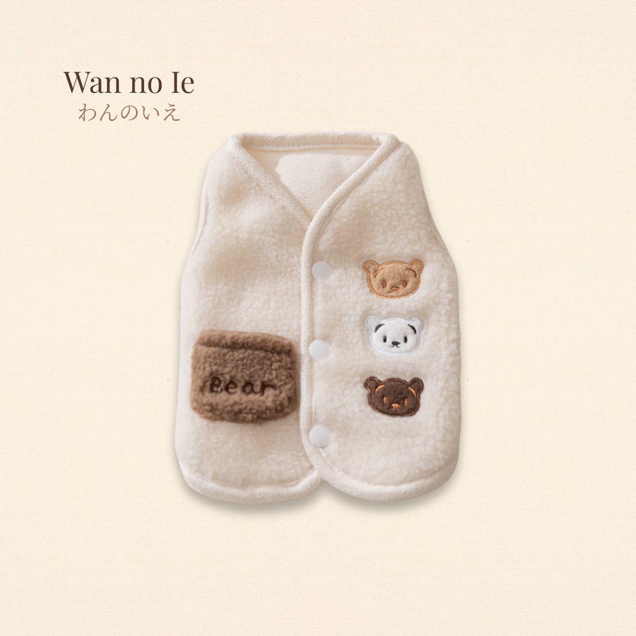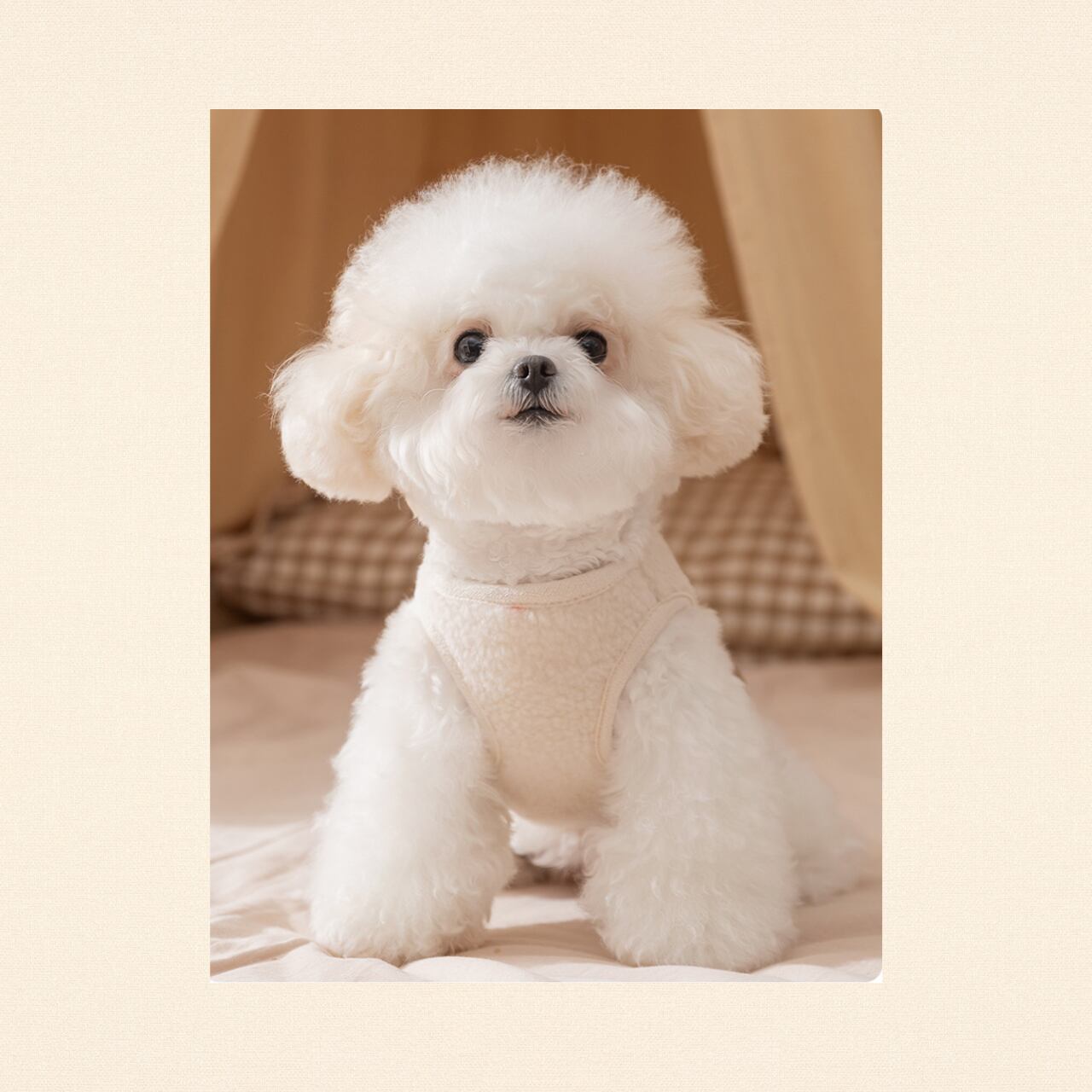 【わんのいえ】犬服 秋冬ペット服 ドッグウェア おしゃれ かわいい ペットカジュアル 小型犬 抜け毛対策 ルームウェア 寒さ対策 ウェア ベスト 白 トップス 防寒着 前開き 袖なし 犬猫兼用