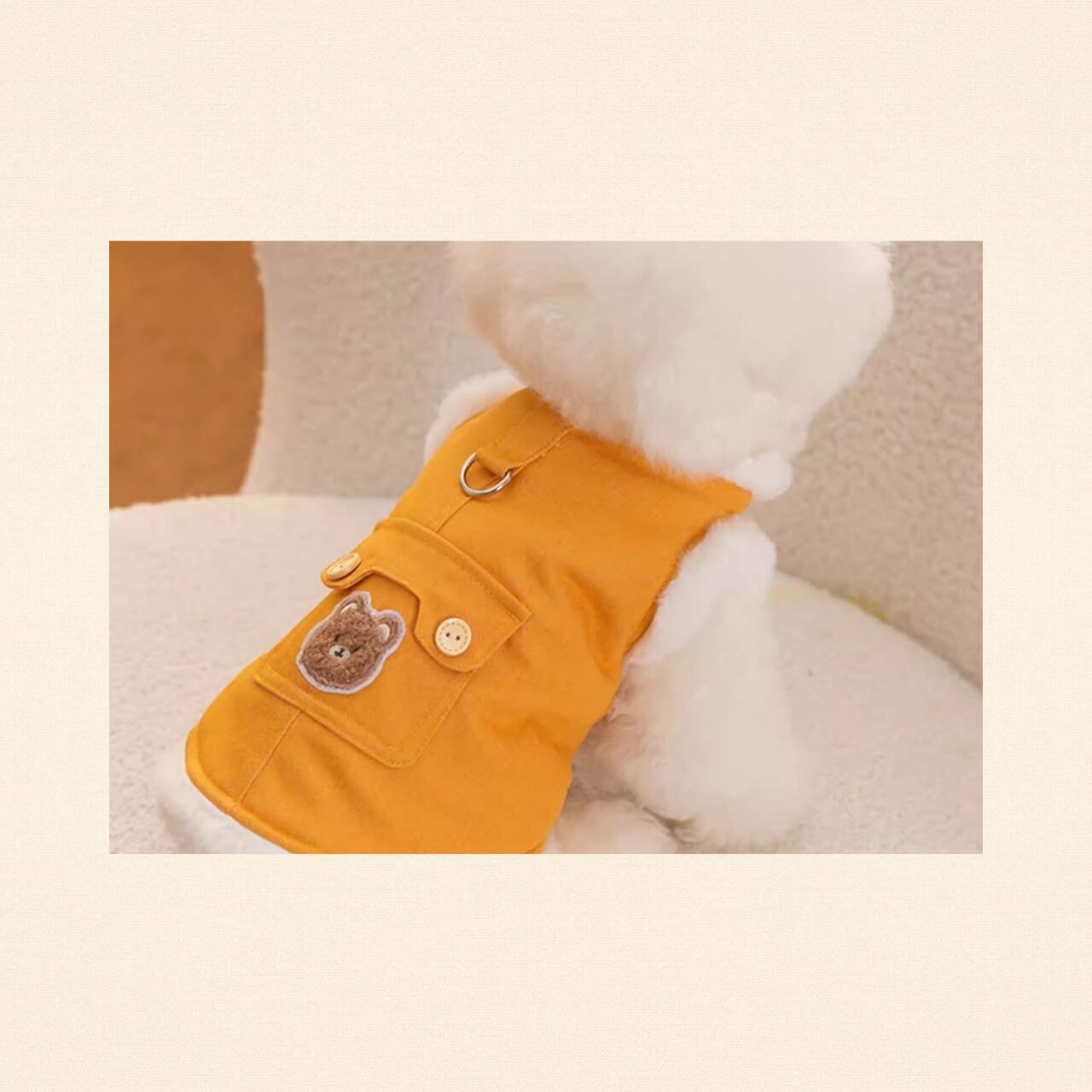 【わんのいえ】犬服 秋冬ペット服 ドッグウェア おしゃれ かわいい ペットカジュアル 小型犬 抜け毛対策 寒さ対策 ウェア ベスト トップス 防寒 黄色 Dカン 着