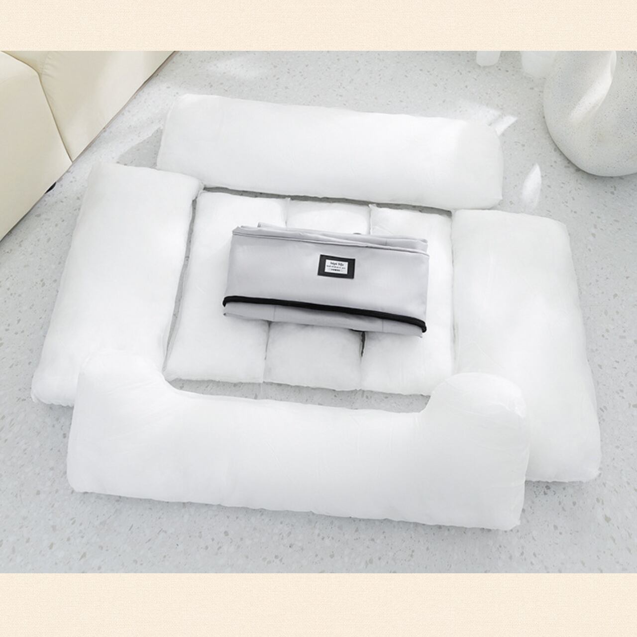 春夏にぴったりの通気性に優れたクッションベッドです。心地よい触感とデザインで、どんなお部屋にも自然に馴染み、愛犬のくつろぎスペースを演出します!