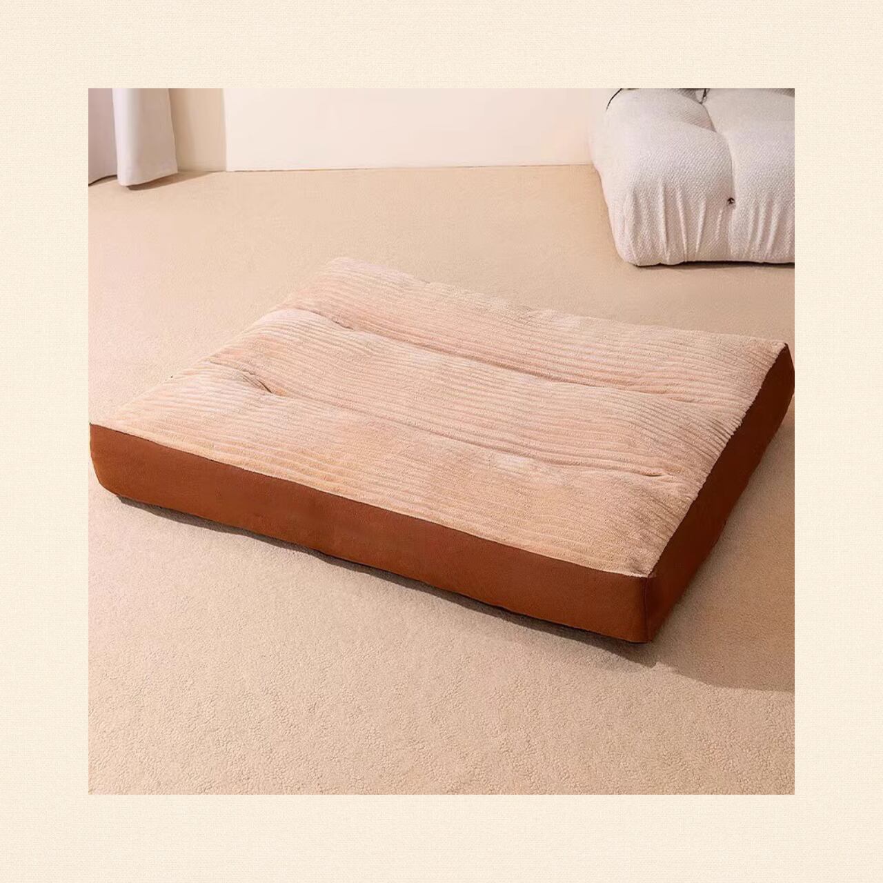 コーデュロイ調のやわらかな素材感が特徴のこの犬用ベッドは、愛犬が心地よくリラックスできるスペースを提供します。ベッドの中綿は分割構造で、偏りにくく型崩れしにくい設計になっています。ゆったり、大きめ、厚みのある、あったかいクッションが優しく愛犬を包み込み、ぐっすり眠れる環境を作り出します!