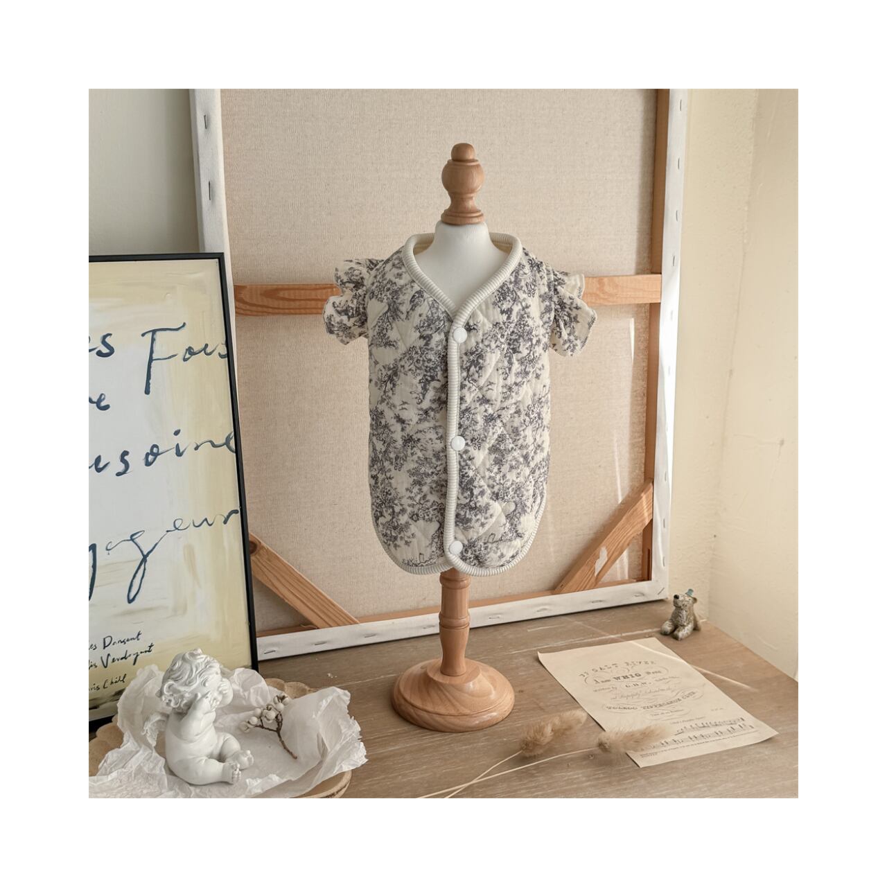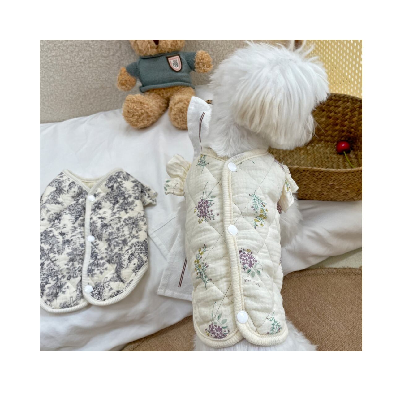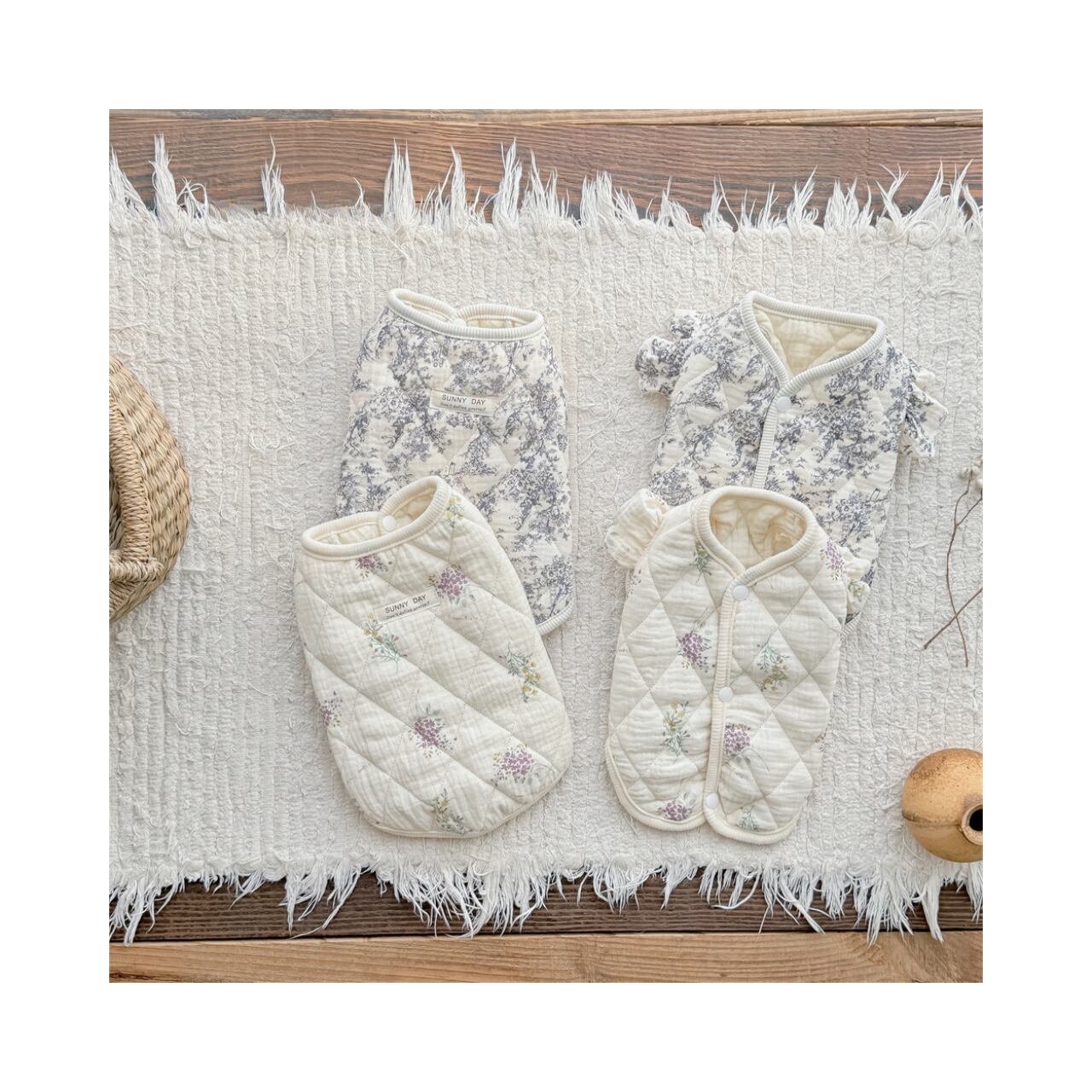 【わんのいえ】犬服 春夏ペット服 ドッグウェア おしゃれ かわいい ペットカジュアル 小型犬 ウェア トップス キルト ベスト 背中開き バックオープン 半袖