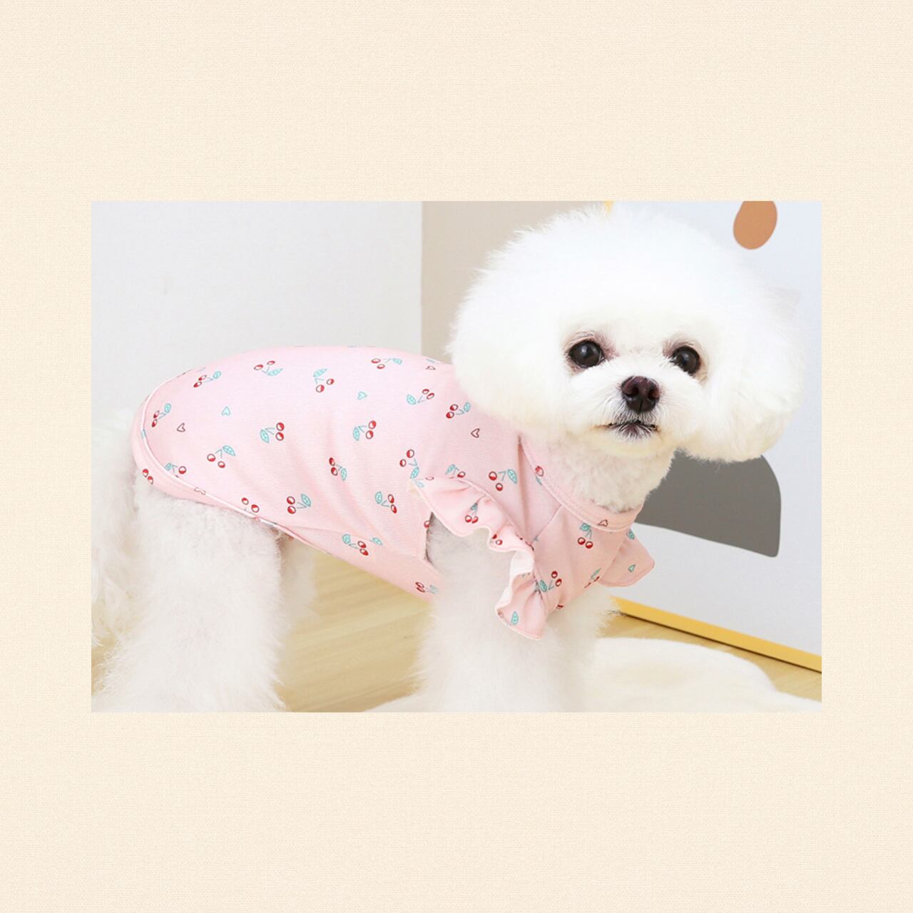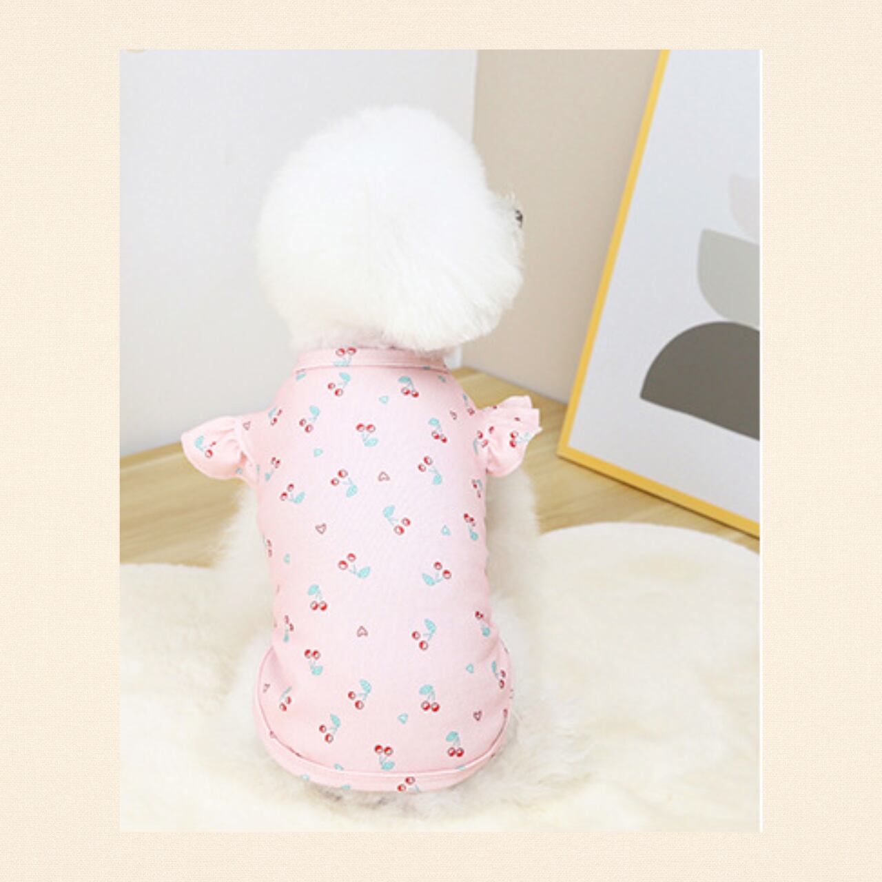 【わんのいえ】犬服 春夏ペット服 ドッグウェア おしゃれ かわいい ペットカジュアル 小型犬 ウェア トップス ピンク さくらんぼ チェリー 半袖
