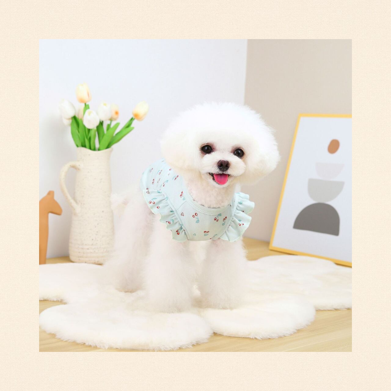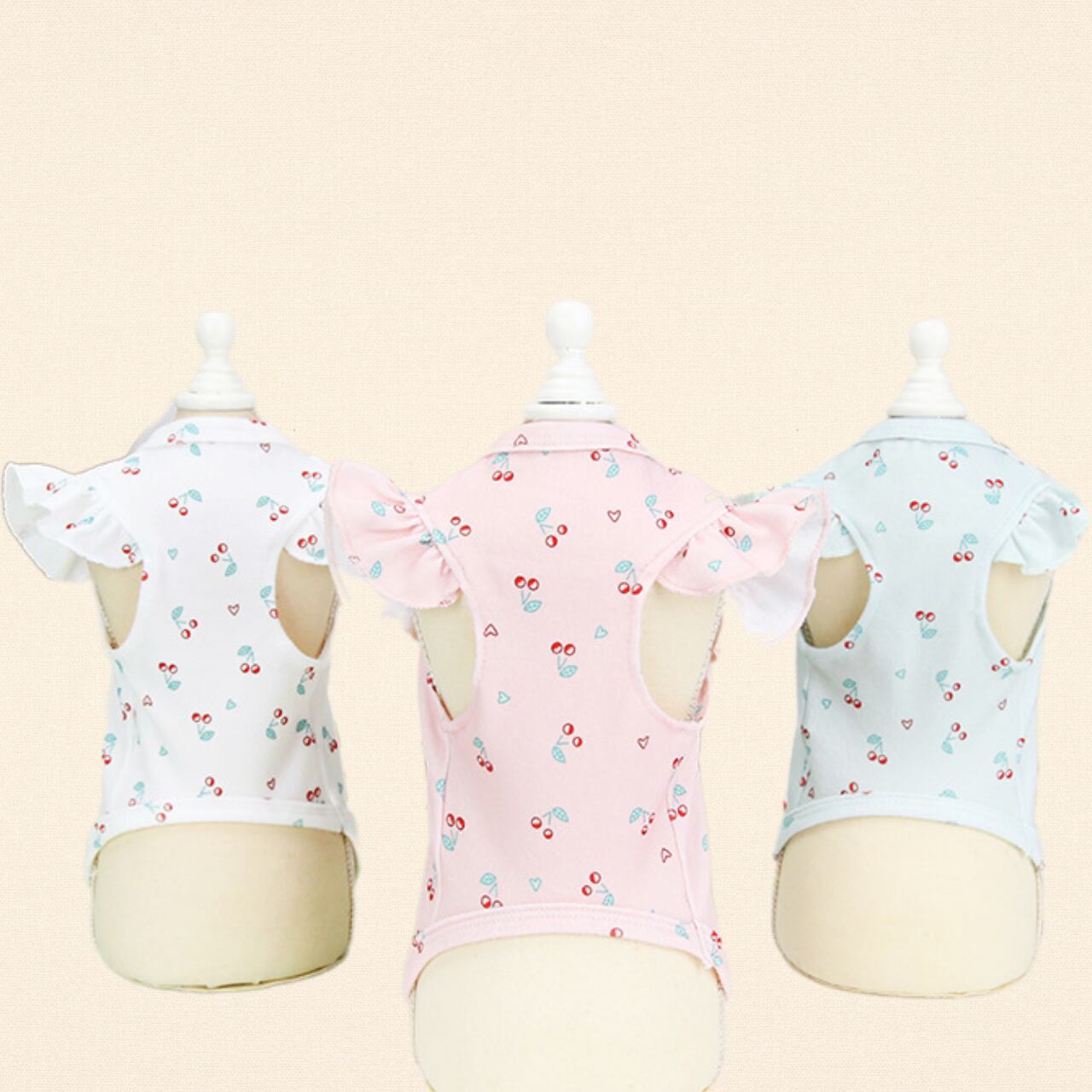 【わんのいえ】犬服 春夏ペット服 ドッグウェア おしゃれ かわいい ペットカジュアル 小型犬 ウェア トップス 半袖 ブルー さくらんぼ チェリー